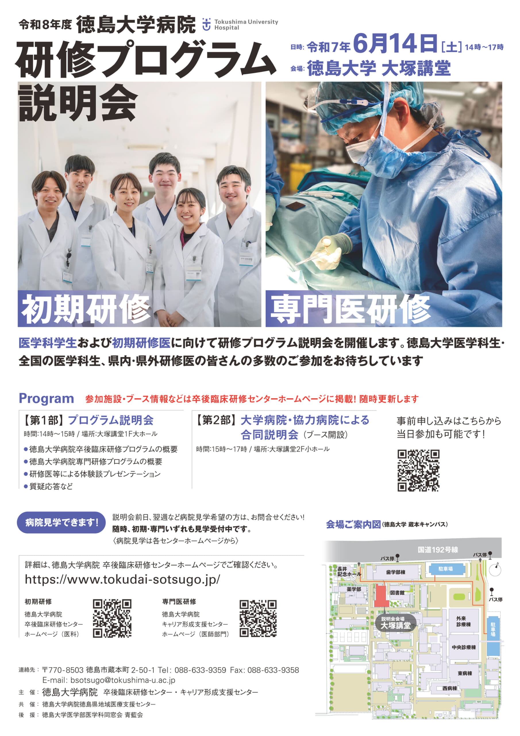 本センターも共催しております『令和8年度徳島大学病院研修プログラム説明会』について